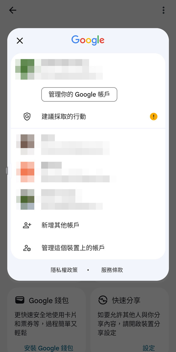 請俠客在設備上確認使用要參加測試的Google帳號