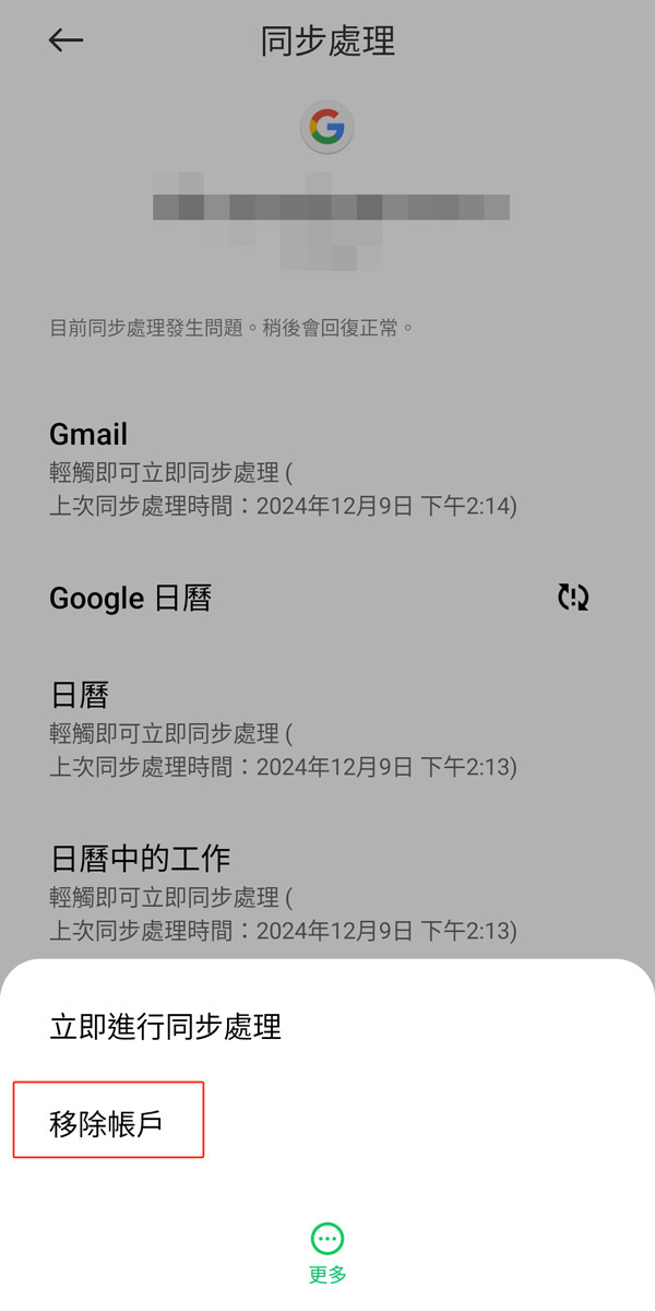 點選移除帳戶完成步驟